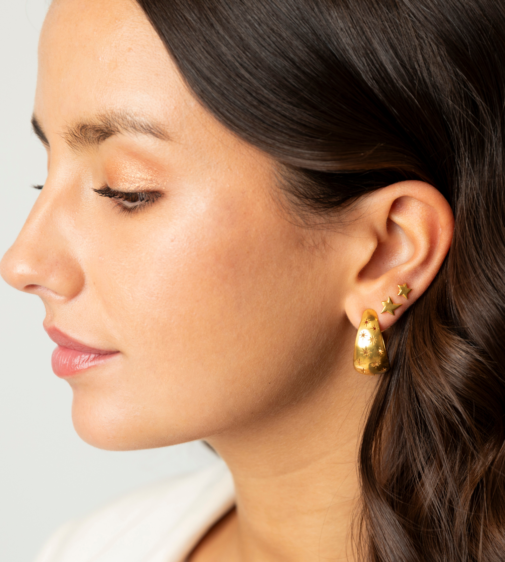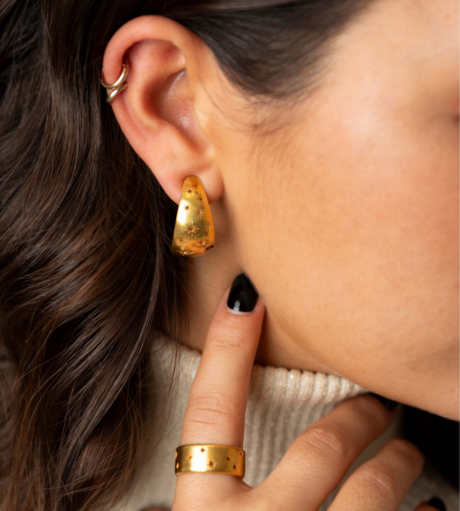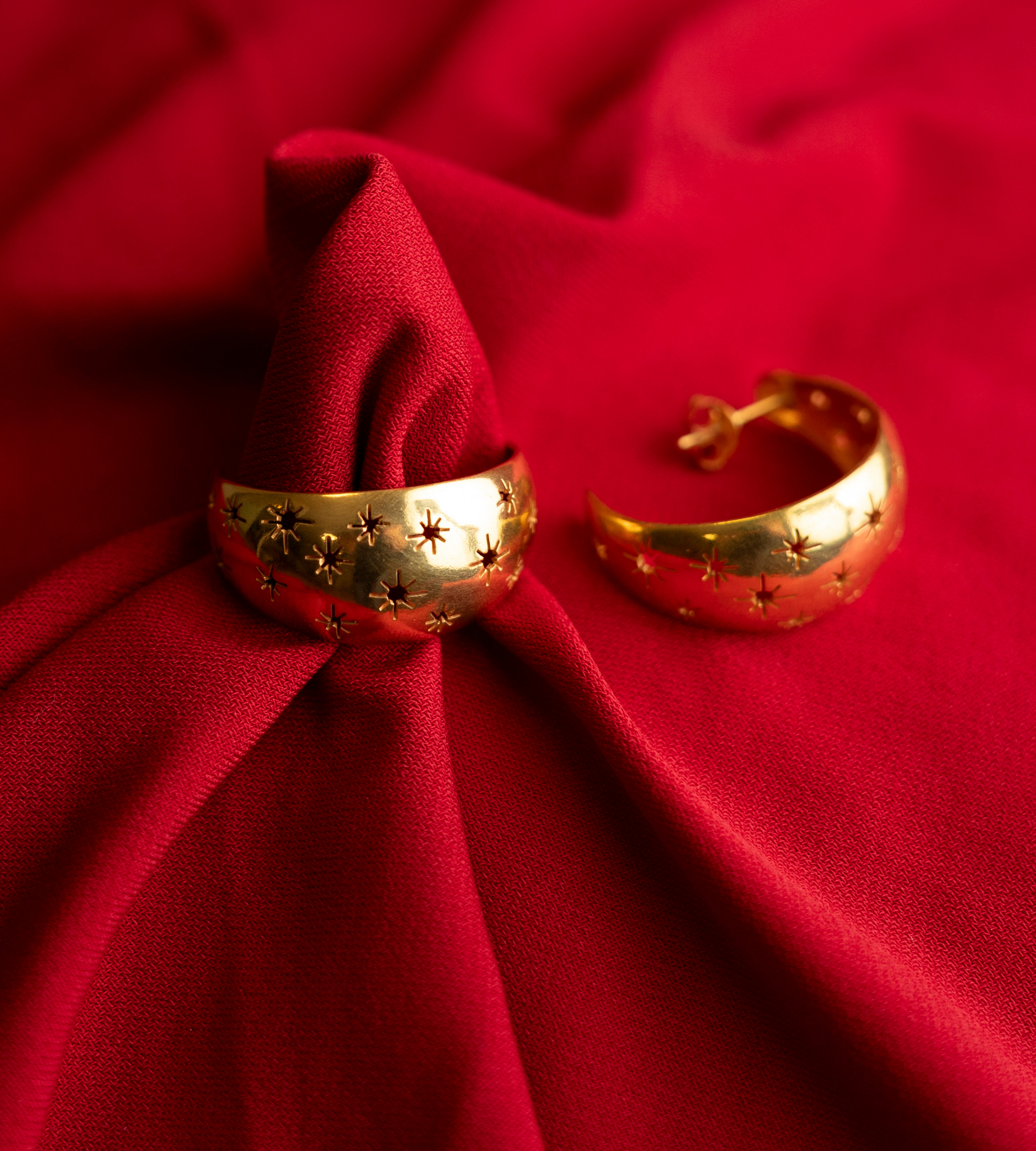 Cada brinco Cassiopeia é único pois cada estrela é recortada minuciosamente à mão.