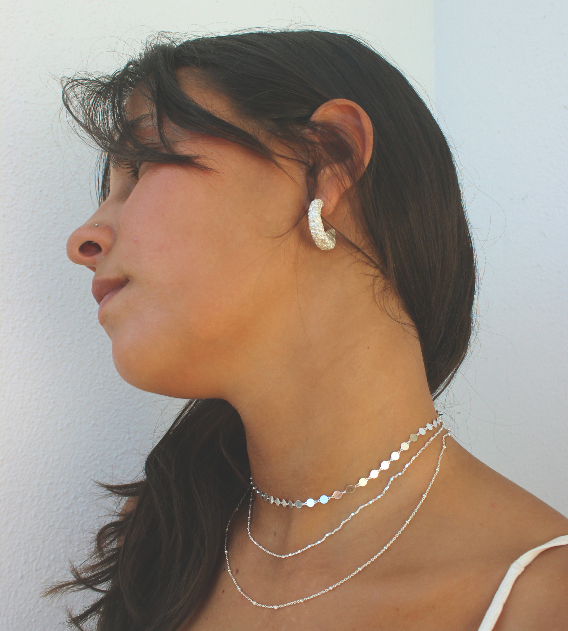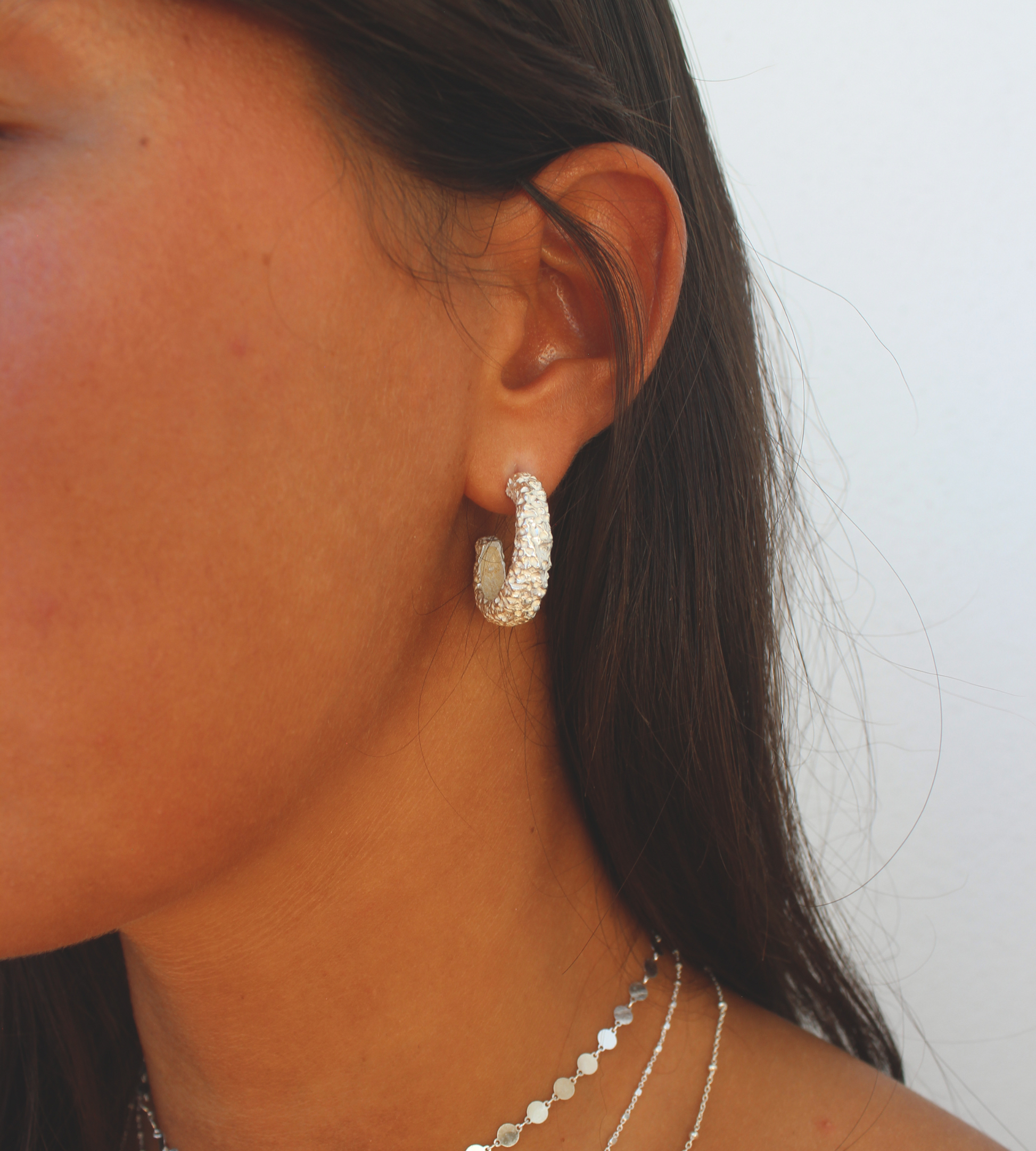 As argolas Dahlia são perfeitas para um look mais arrojado com a sua textura irregular.