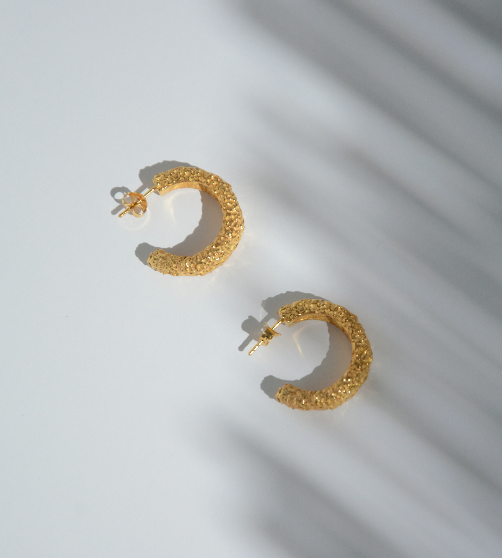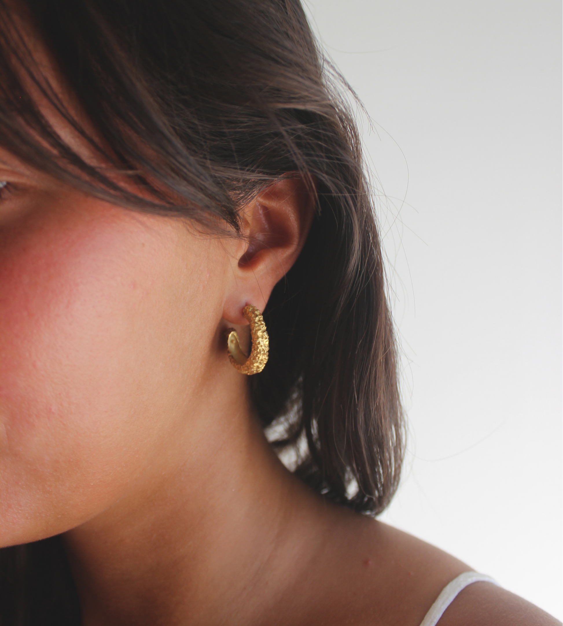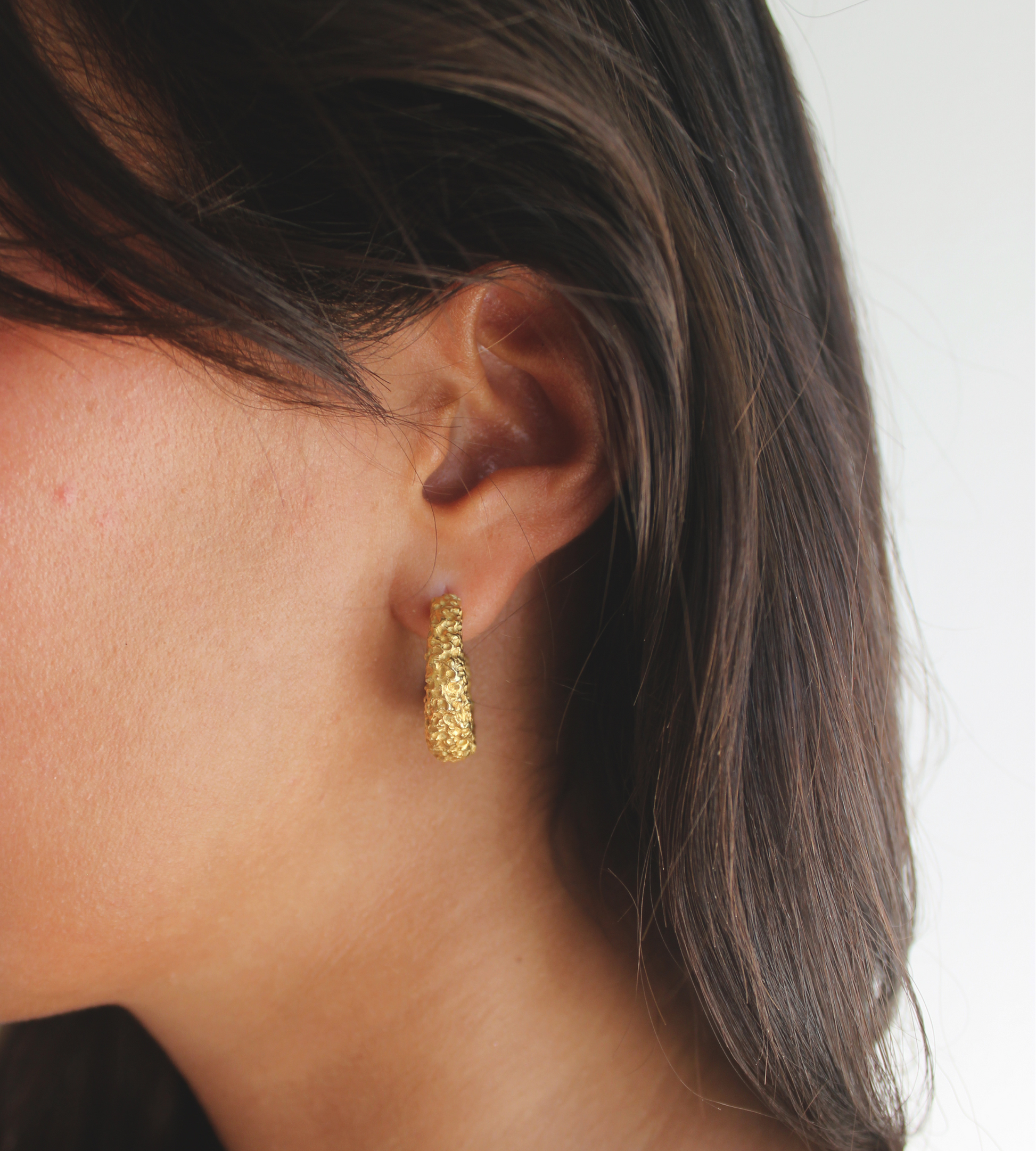 As argolas Dahlia são perfeitas para um look mais arrojado com a sua textura irregular.