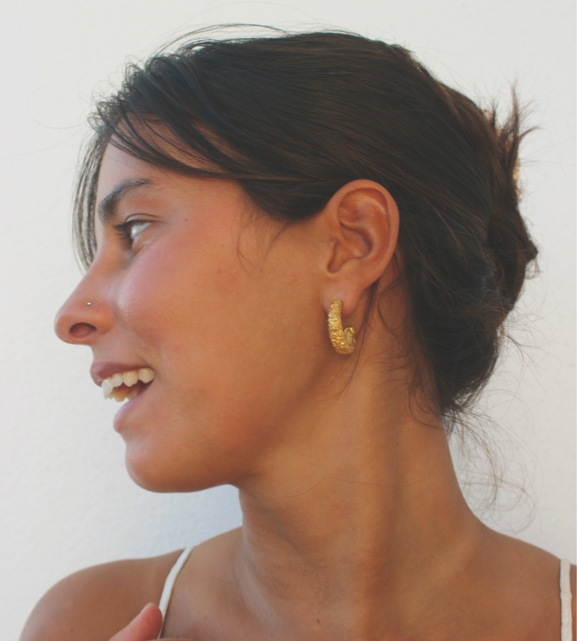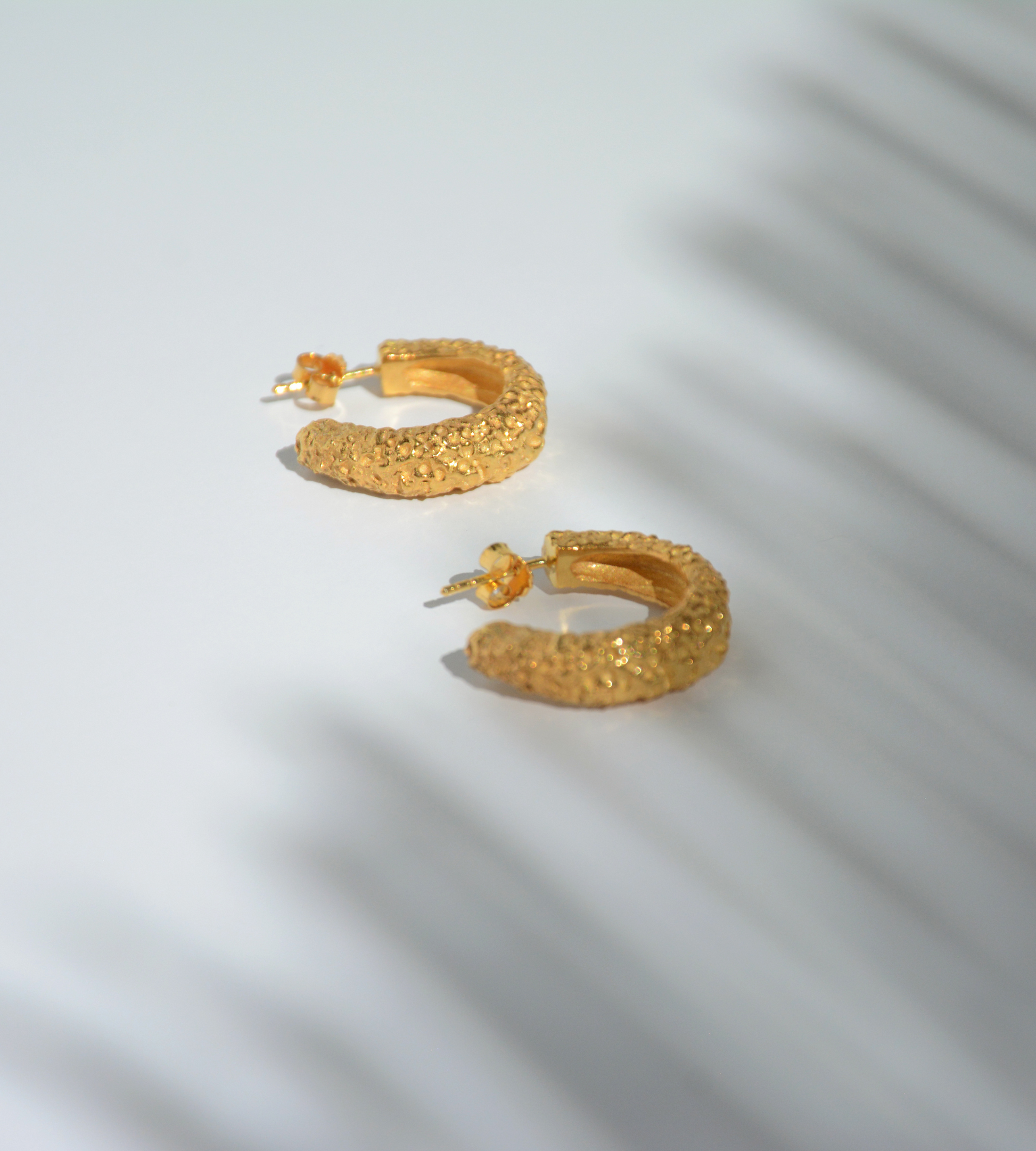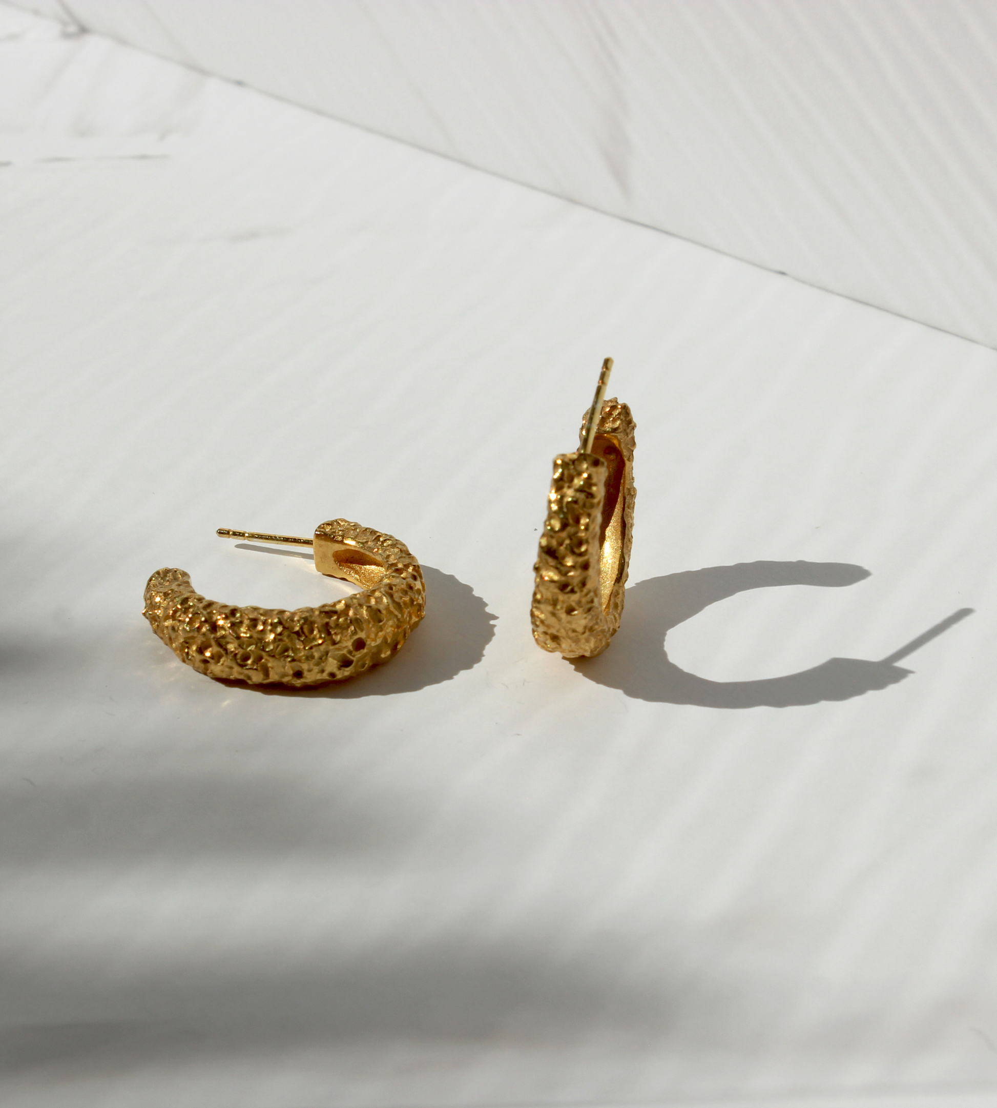 As argolas Dahlia são perfeitas para um look mais arrojado com a sua textura irregular.