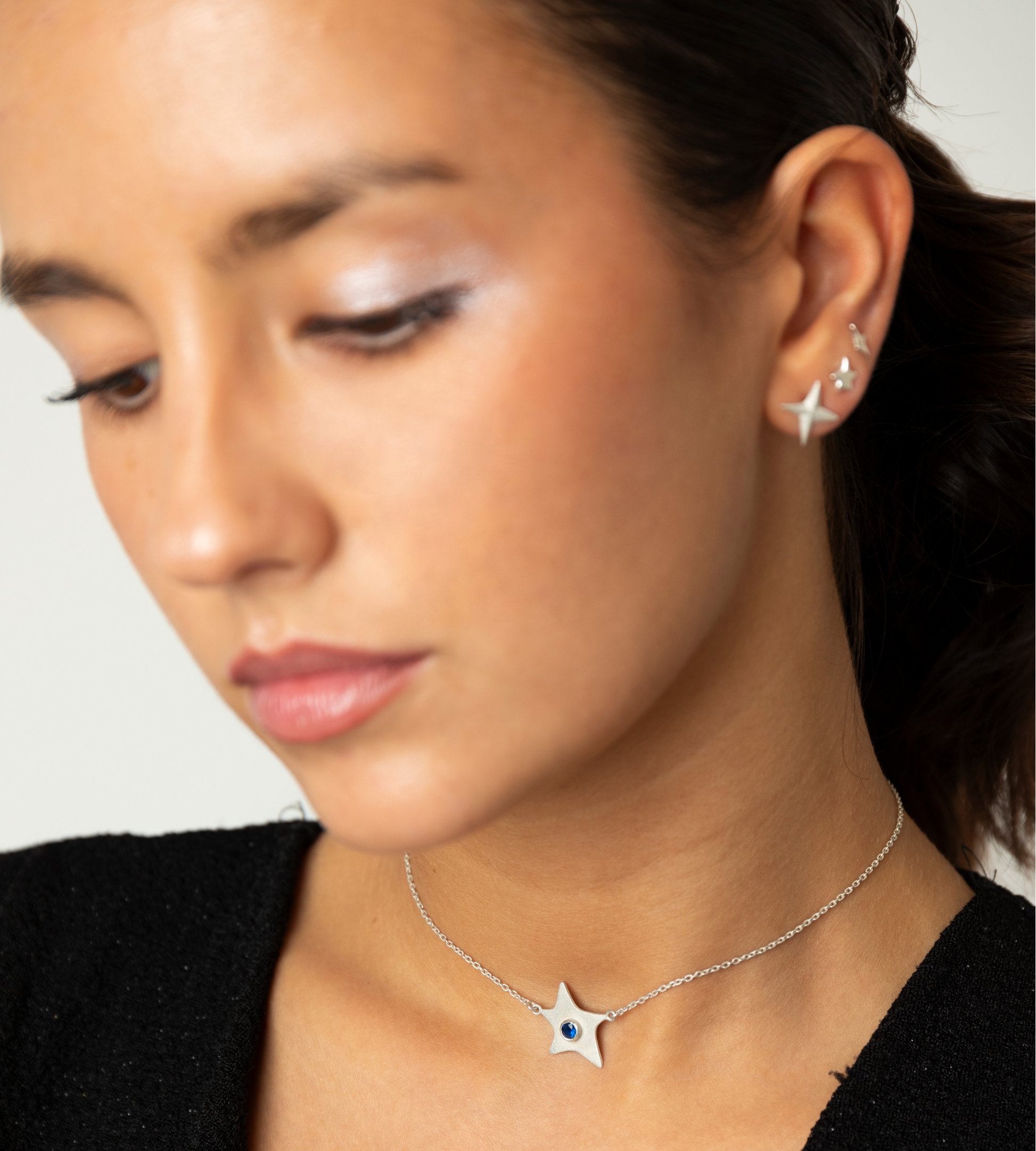 O colar Aquila é uma peça simples e moderna com uma zircónia azul que confere brilho e graciosidade.