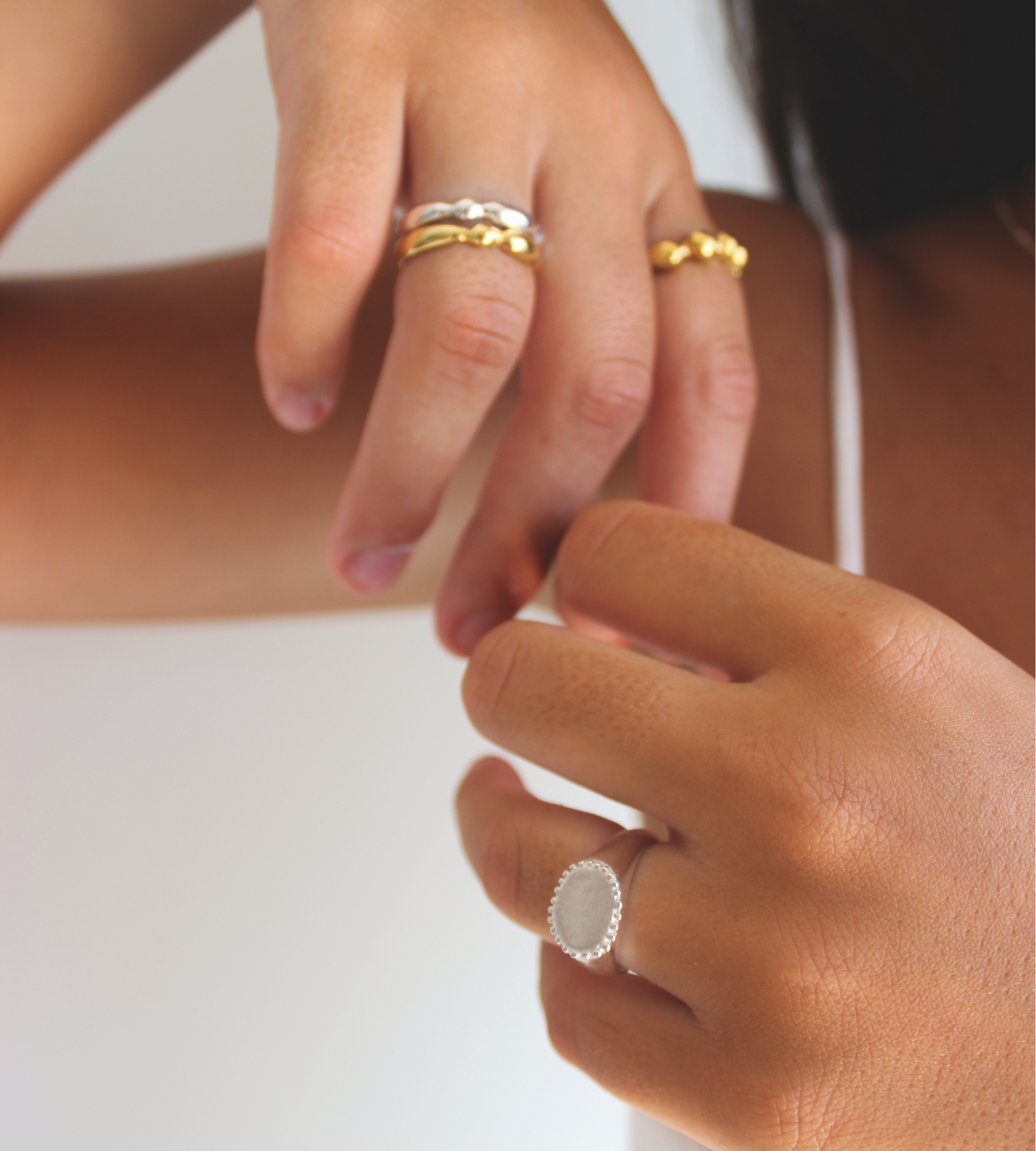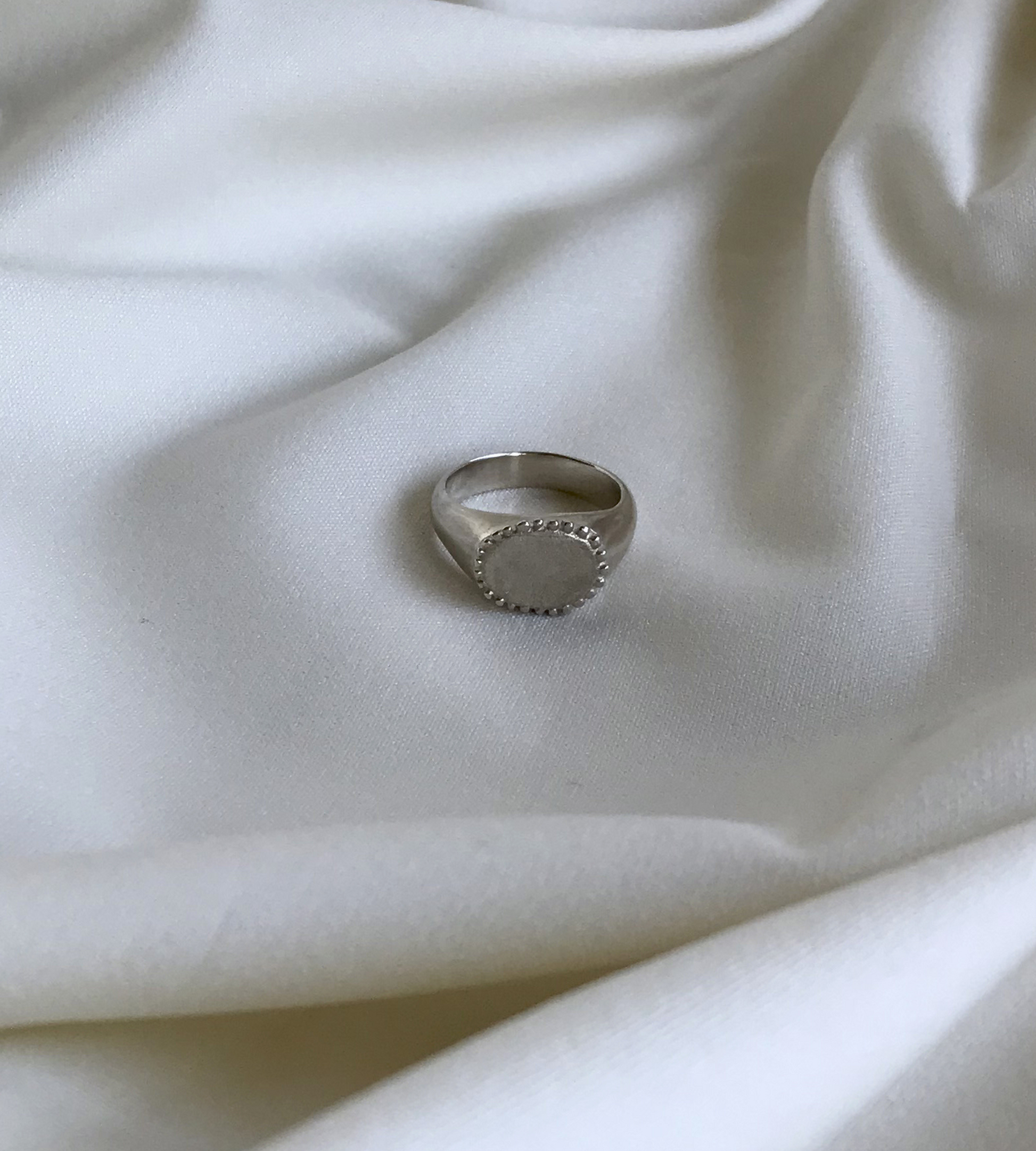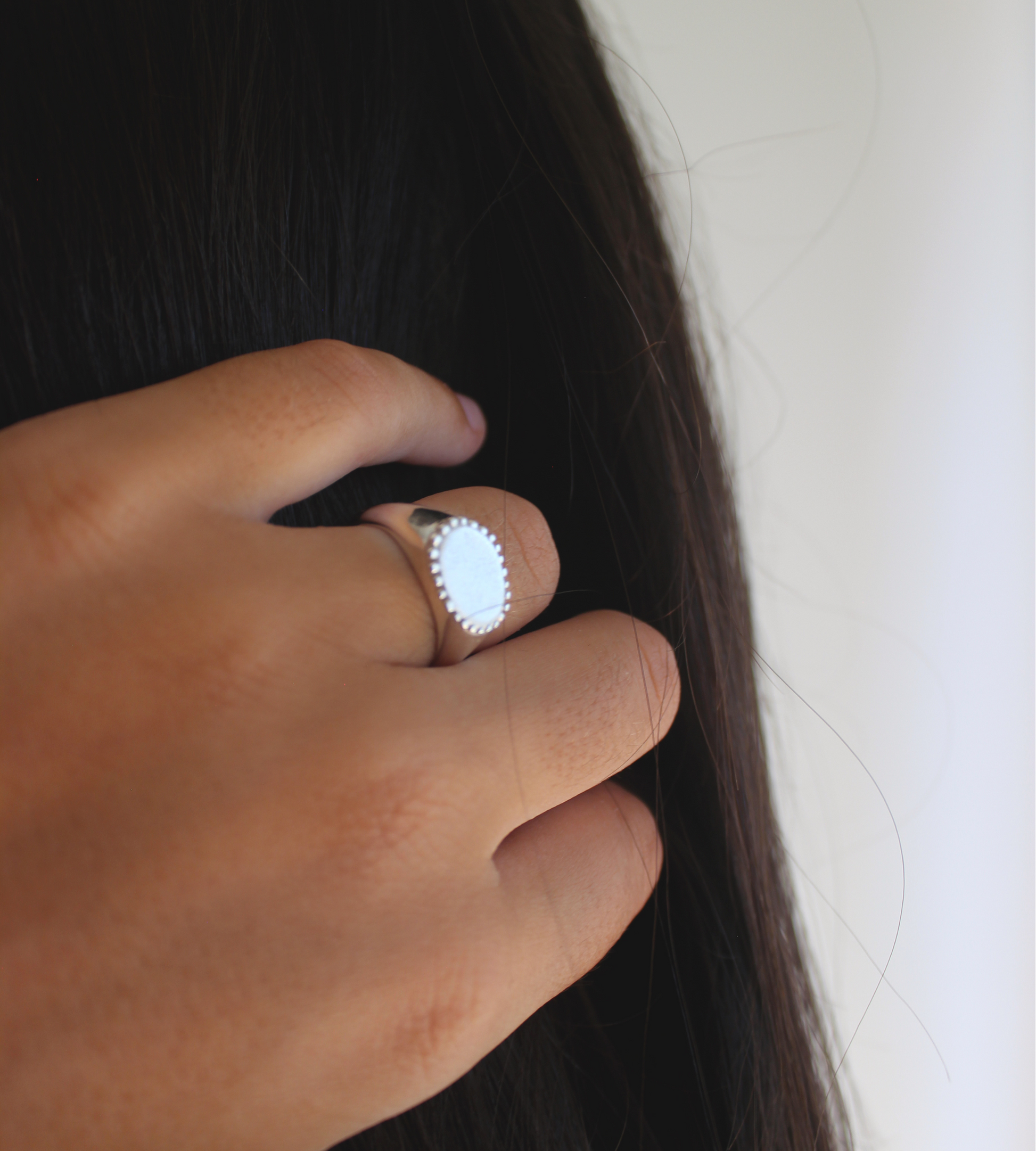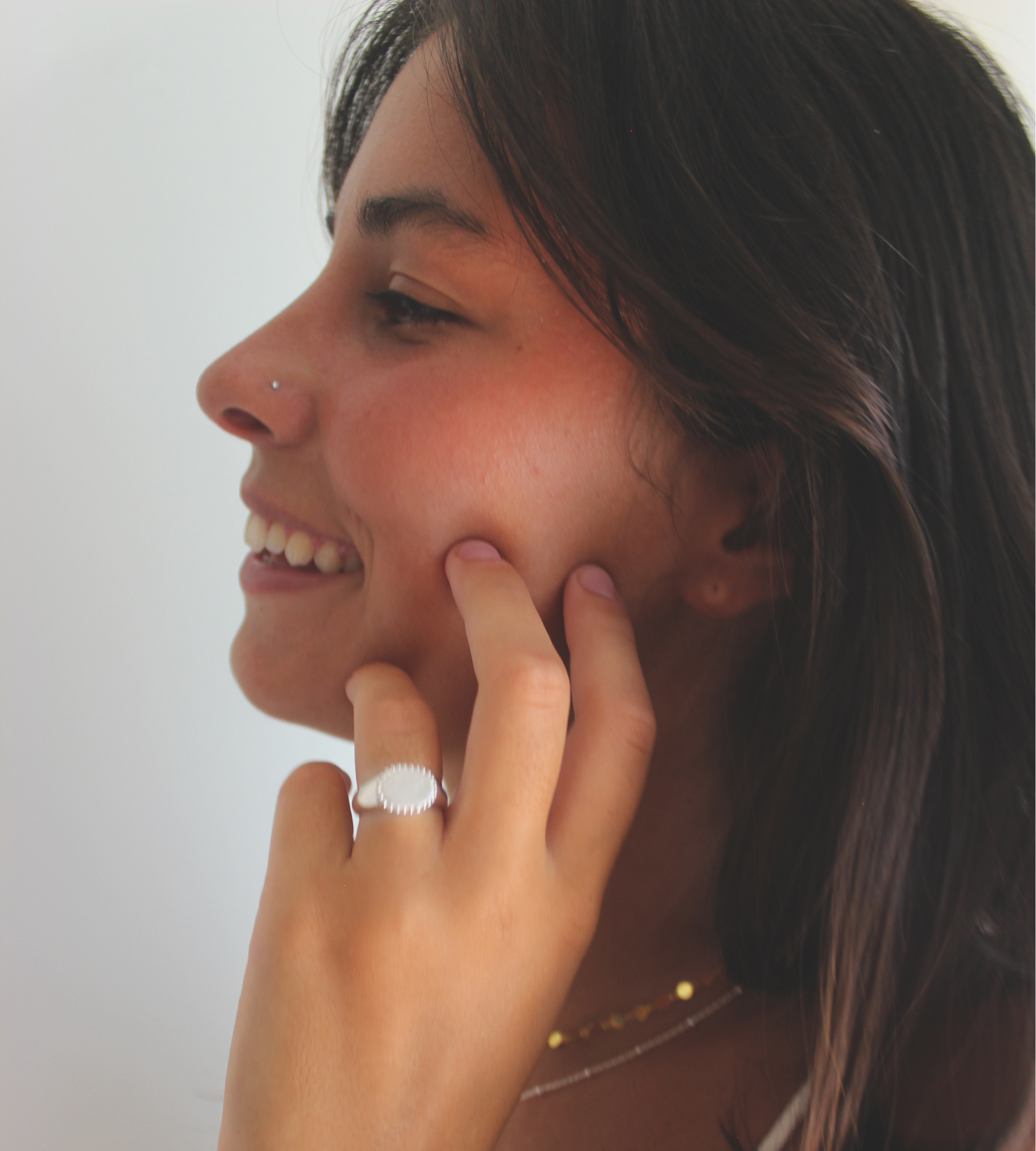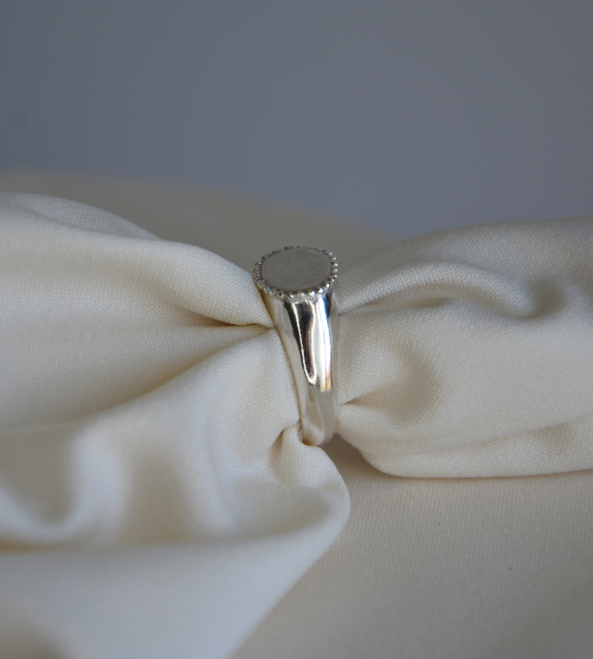 O anel Sophie é um anel de sinete simples de uma elegância muito feminina.