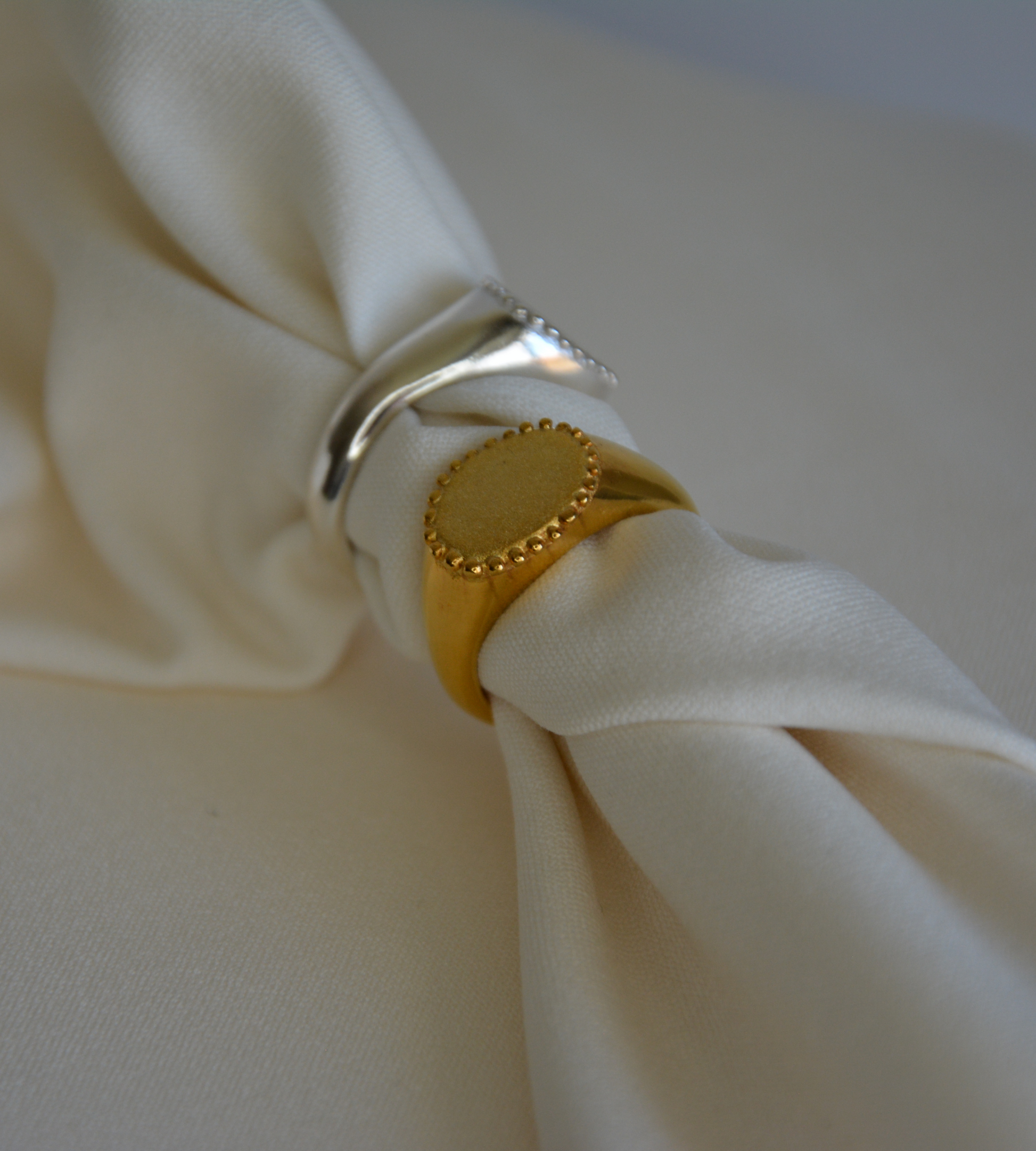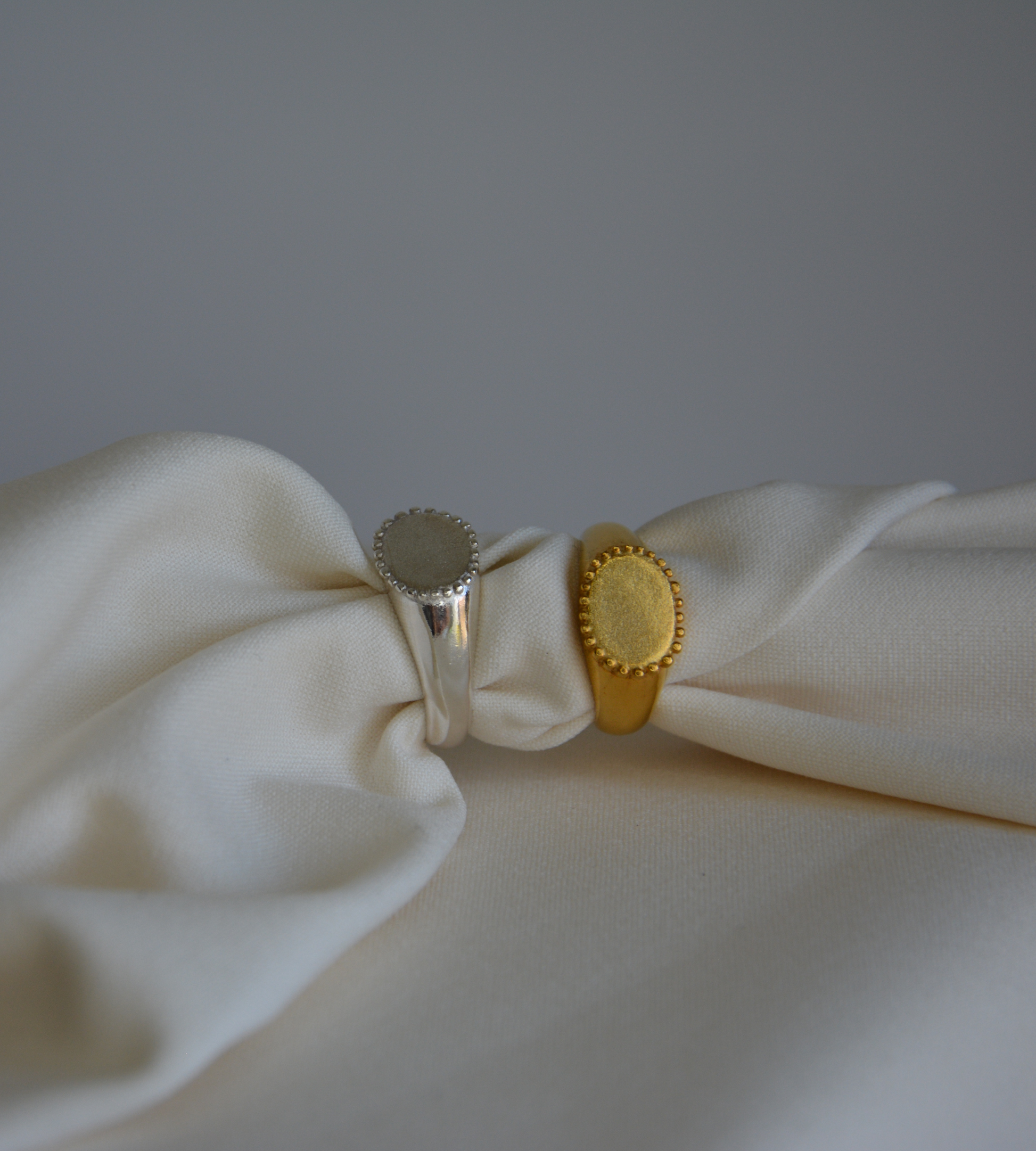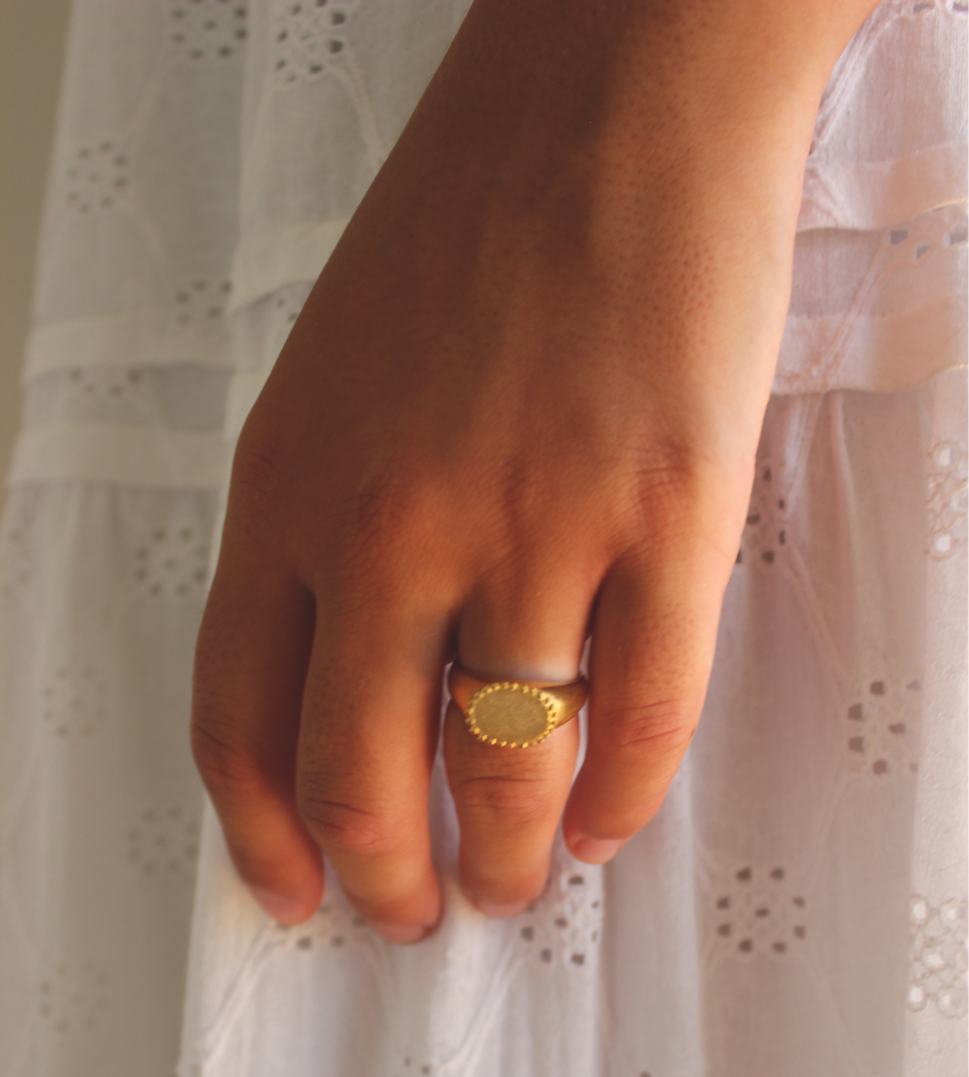 O anel Sophie é um anel de sinete simples de uma elegância muito feminina.